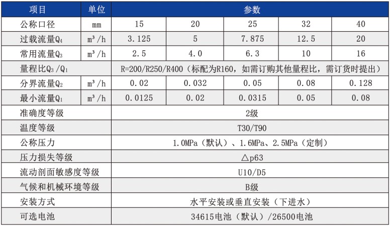 ■ 始動流量低,寬量程比(R160/R200/R250/R400),高準確度等級、穩定性好。