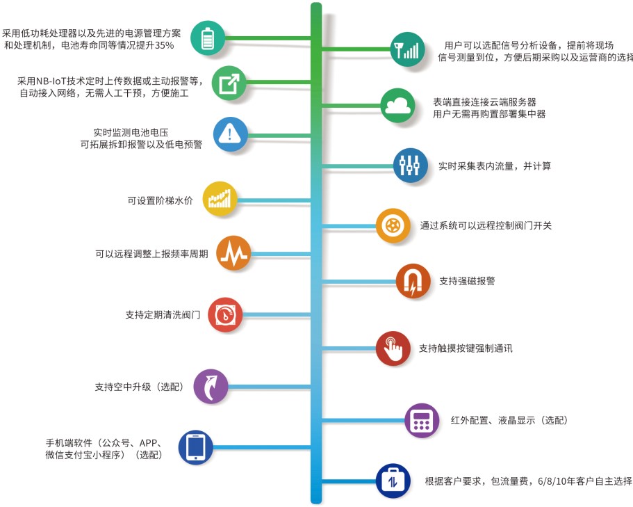 巨靈物聯(lián)網(wǎng)水表整合了新一代的物聯(lián)網(wǎng)通訊技術(shù)、儀表傳感器技術(shù)、計算機軟件匯總分析,具有數(shù)據(jù)采集、存儲、通訊、儀表閥門控制、遠程監(jiān)測控制等功能